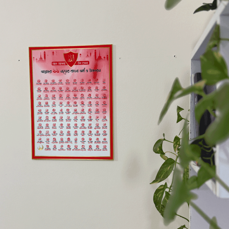 * এটি শুধু একটি ওয়াল ডেকোর নয়, বরং আল্লাহর নামের সৌন্দর্য ও স্মরণে থাকার একটি চর্চা।